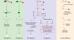 • Comprehensive characterisation of RNA-protein interactions requires different levels of resolution. Here, the authors present an integrated mass spectrometry-based approach that allows them to define the Drosophila RNA-protein interactome from the level of multisubunit complexes down to the RNA-binding amino acid.