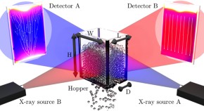 Tracking the deformation of opaque materials under their surfaces is fascinating, yet a challenging task, which has been constrained to static conditions or model materials to date. Here, Baker et al. develop X-ray rheography to reconstruct three-dimensional velocity fields in general granular media.