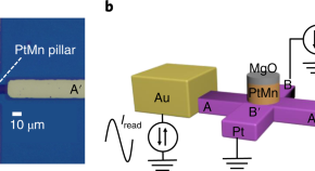 Pillars of antiferromagnetic PtMn, grown on a heavy-metal layer, can be reversibly switched between different magnetic states by electric currents, illustrating the potential of silicon-compatible antiferromagnetic materials in the development of memory and computing devices.