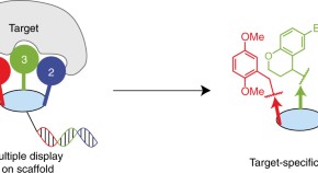 A method to identify pairs of ligands that simultaneously bind to a target protein has been developed. The method uses two DNA-encoded chemical sub-libraries that self-assemble to form stable dual-display structures, and an encoding system that can be decoded by DNA sequencing and enables both ligands to be identified.