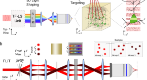 Detection of membrane potential changes using voltage indicators typically requires fast imaging rates and highly sensitive imaging methods. Here, the authors introduce scanless two-photon imaging, an approach which enables high signal to noise ratio voltage recordings at kilohertz rates, from multiple neurons simultaneously, both in vitro and in vivo.