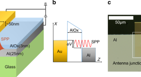 Developing a microscale ultrafast electrical source of surface plasmons is crucial for nanophotonic applications. Here, the authors report the design, fabrication and characterization of nanoantennas for emission and control of surface plasmons by inelastic electron tunneling.