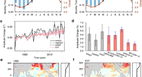 Since the 1980s, subsurface temperature seasonality in extratropical oceans has decreased by 5.7 ± 1.8% below the mixed layer due to increased heat uptake from greenhouse gases, strengthening upper ocean stratification, and limiting heat penetration into deeper layers, according to analysis of a hierarchy of climate models and an idealized diffusive model.