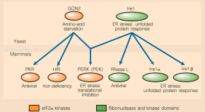 A cell's response to stress is often linked to protein synthesis and folding. These responses must have been conserved through evolution — otherwise, how would multicellular organisms ever have arisen? An evolutionary link has now been found in the form of a newly cloned mammalian stress-response protein called PERK. This protein has features of two gene products that are involved in the stress response in yeast.