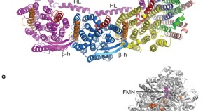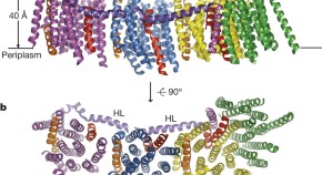 Complex I is an enzyme of the respiratory chain, and is crucial to cellular energy production: it couples electron transfer between NADH and quinine to proton translocation. Here, structures are presented of the membrane domain of complex I from Escherichia coli, and of the entire complex I from Thermus thermophilus. It is proposed that conformational changes at the interface of the two main domains drive a particular 110-Å-long a-helix in a piston-like motion, tilting nearby transmembrane helices and causing proton translocation.