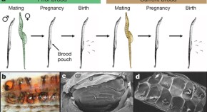 Male pregnancy is restricted to seahorses, pipefishes and their relatives, in which young are nurtured in the male's brood pouch. It is now clear that the brood pouch has a further function. Studies of Gulf pipefish show that males can selectively abort embryos from females perceived as less attractive, saving resources for more hopeful prospects later. This is the only known example of post-copulatory sexual conflict in a sex-reversed species.