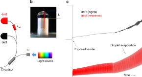 Compact spectrometers can be useful in many applications and many sophisticated architectures have been proposed. In this work, the authors show that with an evaporating droplet on a fiber tip, spectrometry can be robustly and accurately performed with a simple and passive microfluidic system.