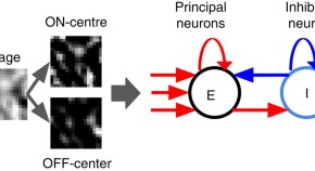 Sensory cortices represent stimuli through joint activity of competing neuronal assemblies. Here the authors show that a model of visual cortex with plastic feedforward and recurrent synapses, exposed to natural images, spontaneously develops attractor dynamics between groups of similarly tuned neurons.