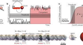 Most insights on DNA-mediated allostery upon transcription factor (TF) binding were either based on artificial promoters or found to be short-ranged. Here authors use single-molecule FRET and cryo-EM to show that Bacillus subtilis bacteria utilize long-range allostery in a stochastic and reversible phenotype switch.
