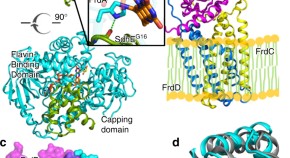 The mechanism for covalent flavinylation of flavoenzymes is still unclear. Here, the authors propose a mechanism based on the crystal structure of a flavinylation assembly intermediate of the E. coli respiratory Complex II comprising the E. coli FrdA subunit bound to covalent FAD and crosslinked with its assembly factor SdhE.