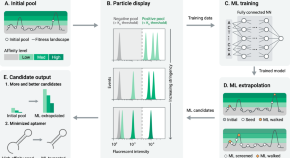 • Current aptamer discovery approaches are unable to probe the complete space of possible sequences. Here, the authors use machine learning to facilitate the development of DNA aptamers with improved binding affinities, and truncate them without significantly compromising binding affinity.