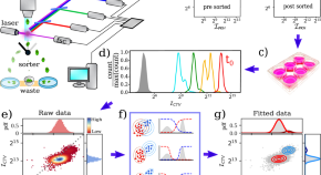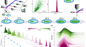 Emerging experimental observation suggests that asymmetrical partitioning in cell division plays an important role in cell-to-cell variability, cell fate determination, cellular aging, and rejuvenation. Here, the authors propose a method based on multicolor flow cytometry to measure asymmetric division of cellular organelles, finding that cell cytoplasm is divided symmetrically but mitochondria and membrane lipids are asymmetrically distributed, and explain these observations through a minimal model of asymmetric partitioning based on biased binomial statistics.