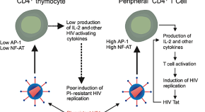 HIV isolates resistant to protease inhibitor treatment have an impaired ability to replicate in thymocytes, allowing T-cell production to continue despite the peripheral T-cell decline. Understanding the basis for cellular differences in HIV replication might teach us new ways to protect the immune system from highly pathogenic strains of HIV-1 (pages 712–718).