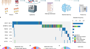 Wang et al. analyze the metabolome and lipidome of heart and plasma samples from patients with HCM and healthy individuals and identify panels of metabolites that can be used as diagnostic biomarkers of HCM or predictors of HCM patient survival; patients are stratified into three groups with distinct cardiac function and survival and identify metabolic pathways that are greatly affected in patients with HCM, suggesting that targeting the pentose phosphate pathway and oxidative stress may represent effective ways to treat HCM.
