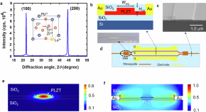 Advanced fiber-optic communications rely on electro-optic materials with suitable properties. Here a perovskite oxide, lanthanum-modified lead zirconate titanate, is used to fabricate a waveguide modulator with line rates as high as 304 Gbit/s using four-level pulse modulation.