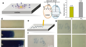 Optical gratings are typically composed of periodic grooves, but these suffer from issues with light scattering and are fragile. Here, a groove-less WO3 grating is demonstrated, which uses electron-proton synergistic doping to spatially tune a rewritable insulator-metal transition and coloration.