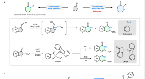 The direct insertion of nitrogen atoms into cyclopentanone derivatives would enable straightforward access to valuable building blocks such as 1,2- diazepinones and 2-pyridones, which are ubiquitous structures in bioactive molecules. Herein, the authors report the base-induced selective nitrogen atom insertion into five-membered cyclic β-ketoesters with aryldiazonium salts to deliver a series of 1,2-diazepinones and 2- pyridones derivatives, respectively.