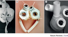 The quest for a practical total artificial heart (TAH) stems from the large number of patients with advanced heart failure, and the limited number of donor hearts available for transplantation. In this Perspectives article, Cohn et al. give their expert insight into the development of TAHs over the past 50 years. They describe the evolution from positive-displacement, pulsatile pumps to continuous-flow devices, and give their opinion on the most promising avenues for future innovation.