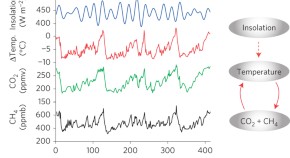 Although the correlation between greenhouse gases and temperature is well documented, it is difficult to show causality from the data. This study uses insight from dynamical systems theory to show that internal Earth system mechanisms largely control climate dynamics, rather than orbital forcing, and temperature does have a reinforcing feedback on greenhouse-gas concentrations.