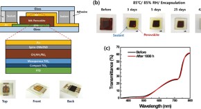 The efficiency of perovskite/silicon tandem solar cells is affected by silicon surface texture, however fabrication processes in solution limit surface studies. Here a perovskite layer on textured silicon is formed through a dry two-step conversion process with lead oxide sputtering and direct contact with methyl ammonium iodide.