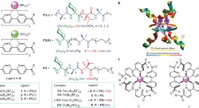 2,2′-bipyridine ligands coordinate to metals to form chiral propeller-like complexes. Now, this chirality is shown to be controlled by the coordination of 2,2′-bipyridine ligands that bear helical oligopeptides, which incorporate chiral amino acids at positions remote from the metal centre. This chirality is further translated, via the metal centre, to other achiral-oligopeptide-containing ligands.