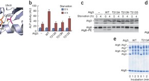 In the yeast autophagy system, the Atg12–Atg5 conjugate acts as an E3 to promote the E2 activity of Atg3, which conjugates Atg8 to phosphatidylethanolamine. Now structural and biochemical analyses reveal that Atg12–Atg5 induces a rearrangement in the catalytic center of Atg3, which employs a threonine residue in addition to the active cysteine to catalyze the conjugation reaction.