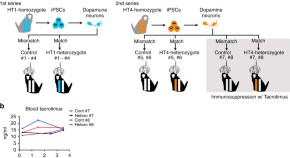 Major histocompatibility complex (MHC) matching improves graft survival rates after organ transplantation. Here the authors show that in macaques, MHC-matched iPSC-derived neurons provide better engraftment in the brain, with a lower immune response and higher survival of the transplanted neurons.