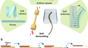 Microchannels are the essential elements for the design of artificial devices but the fabrication of three dimensional (3D) microchannels with complex geometry and a high aspect ratio remains challenging. Here, the authors demonstrate a simple and solvent-free fabrication method capable of producing monolithic microchannels with complex 3D structures, long length, and small diameter.
