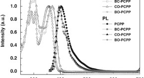 Poly(2,6-(4,4-bis(2-ethylhexyl)-4H-cyclopenta[def]phenanthrene)) (PCPP) is a stable blue light emitting conjugated polymer even after annealing at 150 °C or operation of the device in air. The polymers, BC-PCPP, CO-PCPP and BO-PCPP, have been synthesized by Yamamoto polymerization. The photoluminescence (PL) emission spectra of the BC-PCPP, CO-PCPP and BO-PCPP in chloroform solution show maximum peaks at 398, 387 and 384 nm, respectively. The polymer films show maximum peaks at 419, 425 and 425 and additional peaks at around 530 nm in PL spectra.