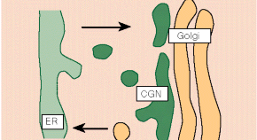 When proteins are secreted from the endoplasmic reticulum (ER) to the Golgi apparatus, they are packaged into vesicles that travel to and fuse with the tubular network at the cis face of the Golgi. But what happens if the ER is a long way from the Golgi? An elegant new study using green fluorescent protein shows that the vesicles fuse to form a vesicular-tubular network, which travels down microtubules to fuse with the cis-Golgi network.