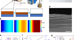 • Aligning 2D nanosheets to form a compact layered structure can maximize the in-plane properties. Here the authors report an efficient and scalable continuous centrifugal casting method to produce highly compact and well-aligned films of GO nanosheets that show record performances in some applications.
