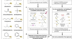 Short-chain primary amines (SCPAs) are industrially important compounds that are commonly produced under harsh synthetic conditions. Here, the authors report a combination of retrobiosynthesis and precursor selection step for design of biosynthetic pathways leading to production of SCPAs, using valine decarboxylase-expressing Escherichia coli strains.