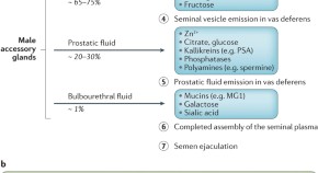 The prostate gland is the major male reproductive gland involved in male fertility. In this Review, the authors discuss the reproductive function of the prostate gland, summarizing physiological and molecular mechanisms that connect prostate homeostasis with male fertility and describing how these mechanisms are associated with prostatic diseases. They highlight the central role of Zn2+and citrate in regulating activities of the prostate epithelium, discuss the influence of bacteria-related prostate inflammation on male fertility, and note the potential role of prostatic inflammation in the development of prostatic hyperplastic growth and prostate carcinogenesis.