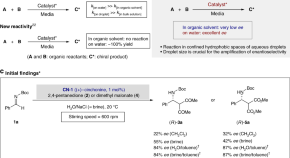 Confined environments may have a significant influence on the transition state and, consequently, on the stereochemical outcome of a chemical reaction. Here, the authors show a droplet size-dependent chirality amplification effect for two model reactions in confined organic droplets surrounded by water cages.