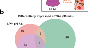 Regulatory small RNA (sRNA) interact with mRNAs to regulate their stability, transcription, and translation via diverse mechanisms. Here, McKellar et al. apply RNase IIICLASH of multi-drug resistant Staphylococcus aureus under different culture conditions to link the network of RNA-RNA interactions to environmental conditions and find that the production of small membrane-permeabilizing toxins is strongly regulated by sRNAs.