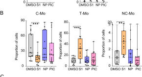 The immunobiology regulating the contribution of monocytes to severe COVID-19 immunopathology are not fully understood. Here the authors show that SARS-CoV-2 S1 and NP proteins differentially promote NLRP3/NLRC4 inflammasome activity, differentiation, and T cell-priming function of monocytes.