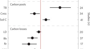 Atmospheric deposition of nitrogen can, but does not always, speed up the sequestration of carbon in trees and forest soil. This complexity may arise from the spatial variations in each of the three mechanisms by which nitrogen affects carbon storage.