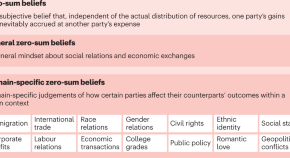 People hold subjective beliefs that, independent of the actual distribution of resources, one party’s gains are inevitably accrued at other parties’ expense. In this Review, Davidai and Tepper synthesize research on when and why such zero-sum beliefs emerge and their consequences for individuals, groups and society.