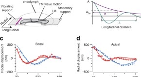 Mutation of theTectbgene reduces auditory sensitivity but increases frequency selectivity. Here the authors show that Tectb mutation reduces both the spatial and temporal propagation of travelling waves along the tectorial membrane, explaining the unexpected auditory abnormalities in this mutant.