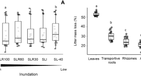 A new study shows the total global SOC stock of 1 m in the world’s tidal marshes to be 1.44 Pg C. On average, SOC in tidal marshes’ 0–30 cm and 30–100 cm soil layers are estimated at 83.1 Mg C ha−1 and 185.3 Mg C ha−1, respectively.