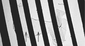 Investigations of individual graphene sheets freely suspended on a microfabricated scaffold in vacuum or in air reveal that the membranes are not perfectly flat, but exhibit an intrinsic waviness, such that the surface normal varies by several degrees, and out-of-plane deformations reach 1 nm.