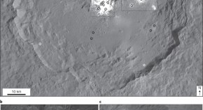 The dwarf planet (1) Ceres, the largest object in the main asteroid belt, is found to have localized bright areas on its surface; particularly interesting is a bright pit on the floor of the crater Occator that exhibits what is likely to be water ice sublimation, producing crater-bound haze clouds with a diurnal rhythm.