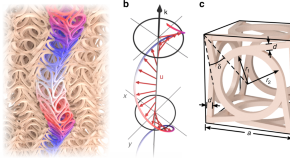 • Here, the authors report an effect analogous to optical activity in a 3D mechanical micro-lattice composed of chiral unit cells. They spatiotemporally resolve the motion of metamaterial beams at ultrasonic frequencies with nanometric precision and show up to 22° polarization rotation per unit cell.