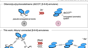 Pure hydrocarbons with properties that can be switched by external stimuli are interesting for the design and development of new responsive materials. Here, the authors develop an oligomeric [8]annulene-based material that combines topological switching upon redox changes with structural simplicity, stability, and straightforward synthesis.