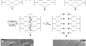 Graphene nanoribbons have important electronic properties — as their width increases they change from semiconductor to semi-metal — but it has been difficult to make large quantities. To do so, Tour et al. simply longitudinally unzip multiwalled carbon nanotubes with permanganate in acid to form graphene oxide, which is then reduced to restore electronic conductivity. The ribbons are about 100 nm wide (thinner ones tend to 'mat'), and the authors use them to make field-effect transistors.