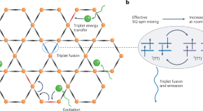 Engineering inter-triplet exchange coupling allows spin mixing between singlet and quintet manifolds in triplet–triplet pair states in metal–organic frameworks, demonstrating increased room-temperature triplet-fusion rates under relatively small applied magnetic fields.