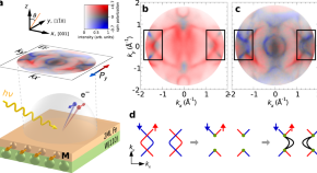 It has been predicted that elemental Iron, with low dimensionality, will be a topological metal hosting Weyl nodes. Here, Chen et al. grow iron on tungsten, a heavy metal with a strong spin-orbit interaction, and using momentum microscopy, show the emergence of giant open Fermi arcs which can be shaped by varying the magnetization of the iron.