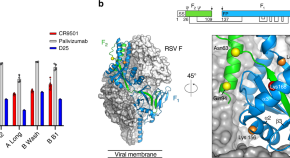 • The respiratory syncytial virus (RSV) F glycoprotein forms a trimeric complex and mediates viral entry. Using structures of RSV F in complex with antibodies, Gilman et al. here show a breathing motion of the prefusion conformation of F, resulting in transient opening of the trimeric complex in solution and on the cell surface.