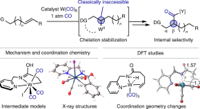 The regioselectivity of tandem isomerization/hydrocarbonylation reactions is typically dictated by thermodynamics and there are limitations on the isomerization of internal alkenes. Now, it has been shown that a low-valent-tungsten catalyst controls the isomerization of alkenes to classically challenging unactivated internal positions and, with the aid of a directing group, enables subsequent addition of hydrogen and carbon monoxide.