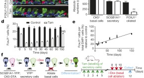 Little is known about how the relative proportions of stem cells and differentiated cells are regulated; basal stem/progenitor cells of the mouse airway epithelium self renew and differentiate into secretory and ciliated cells, and basal stem cells continuously send daughter cells a forward niche signal necessary for daughter cell fate maintenance.